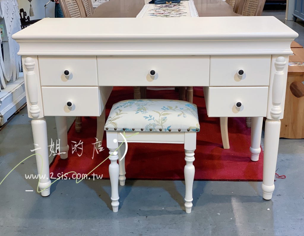 商品名稱 : 鄉村白多抽書桌、化妝桌